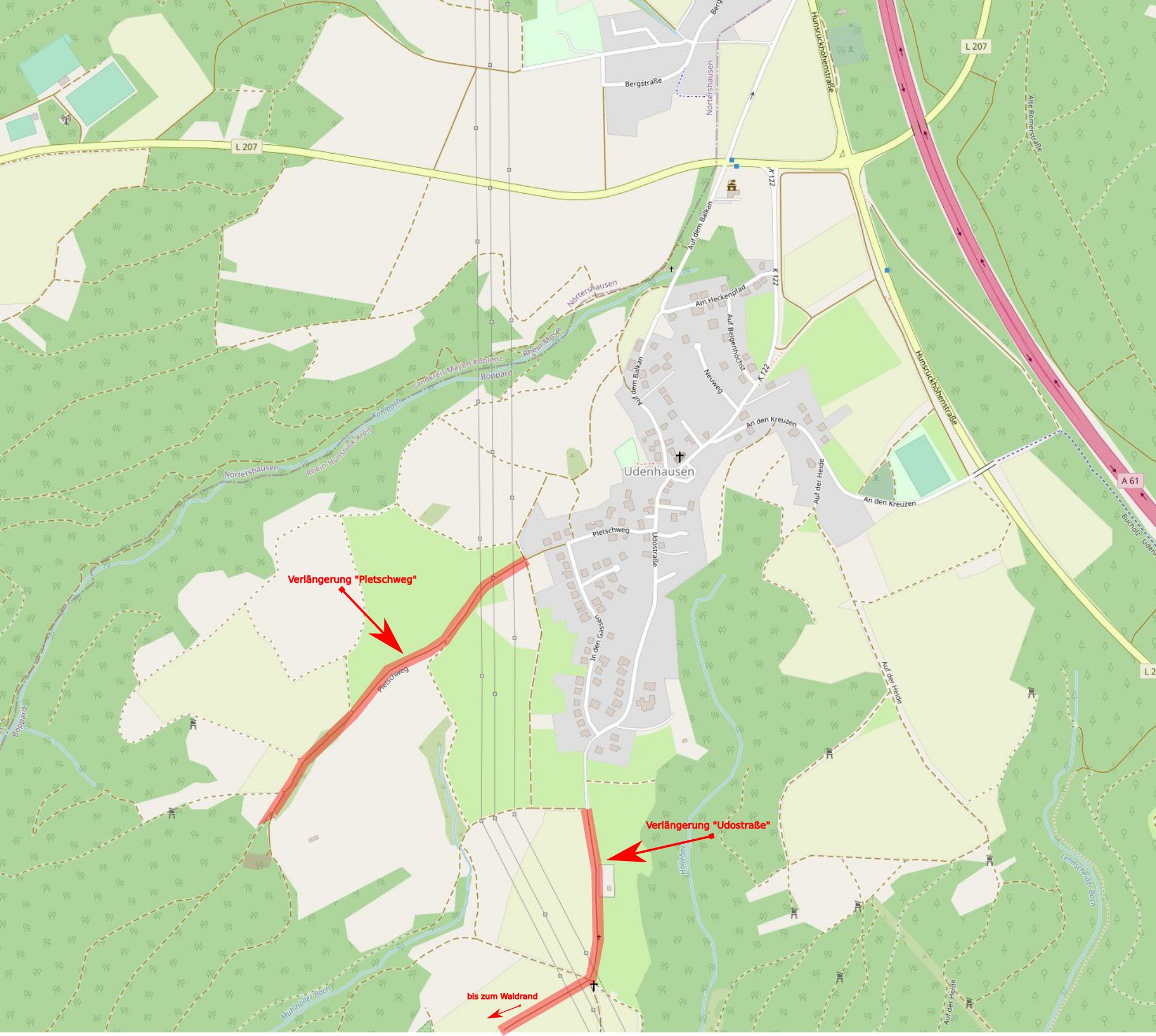 In Udenhausen gibt es Obstbaumalleen, die der Ortsgemeinde gehören: Dabei handelte es sich um die Verlängerung der Udostrasse in Richtung ehemaligem Wasserwerk bzw. Heiligenhäuschen und die Verlängerung des Pletschwegs in Richtung Grünschnittplatz.